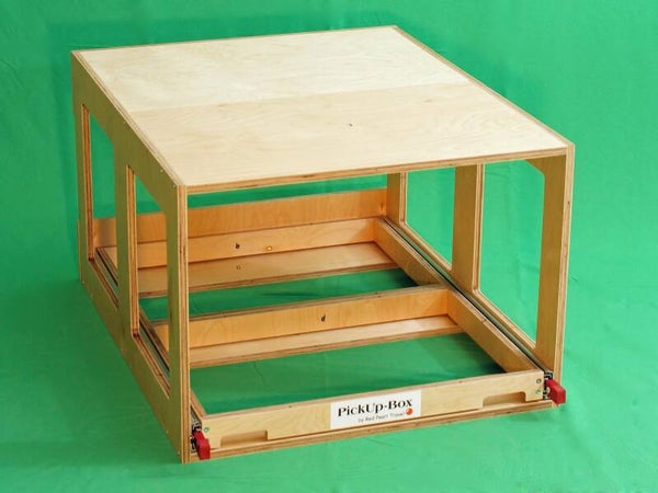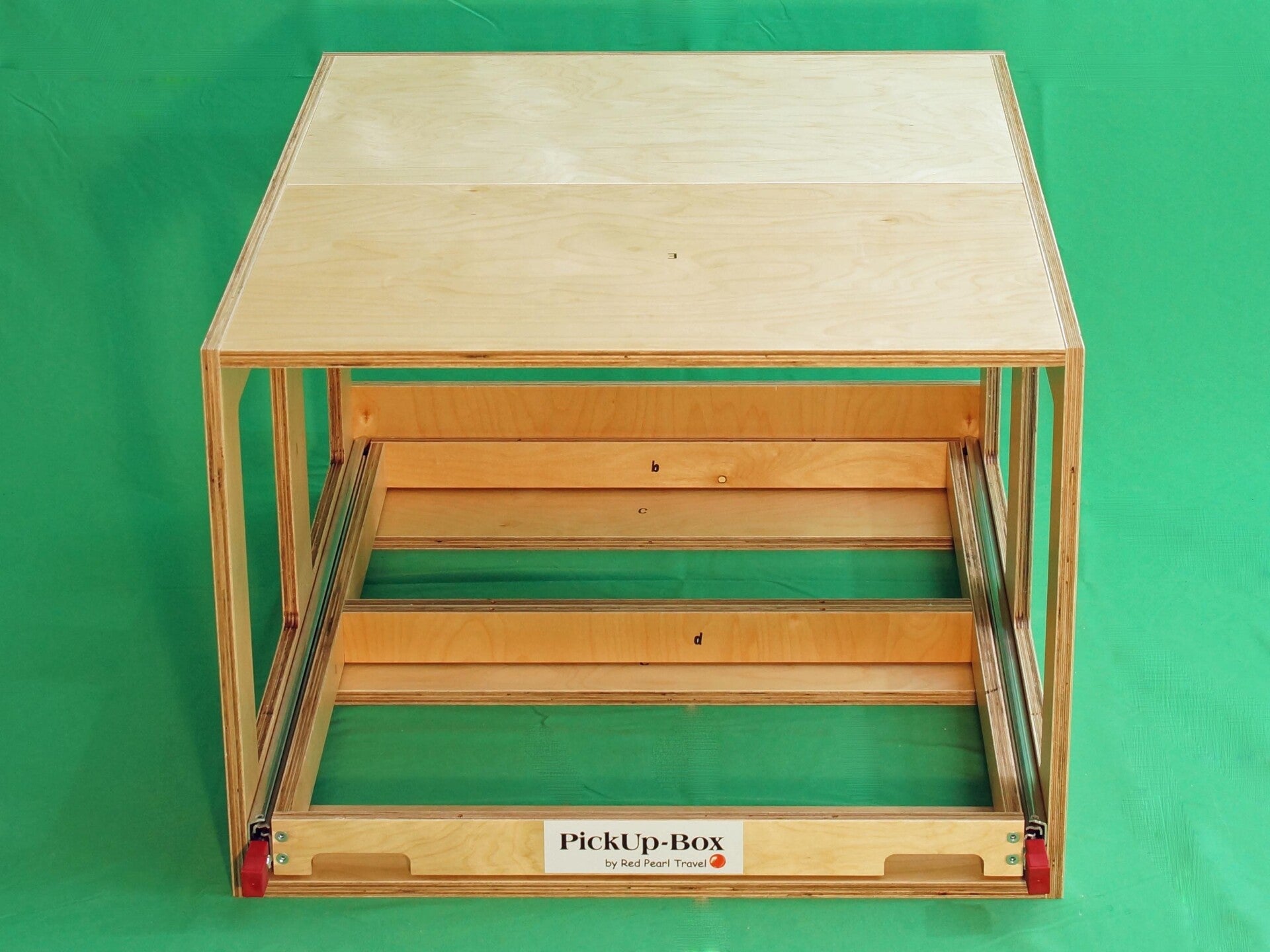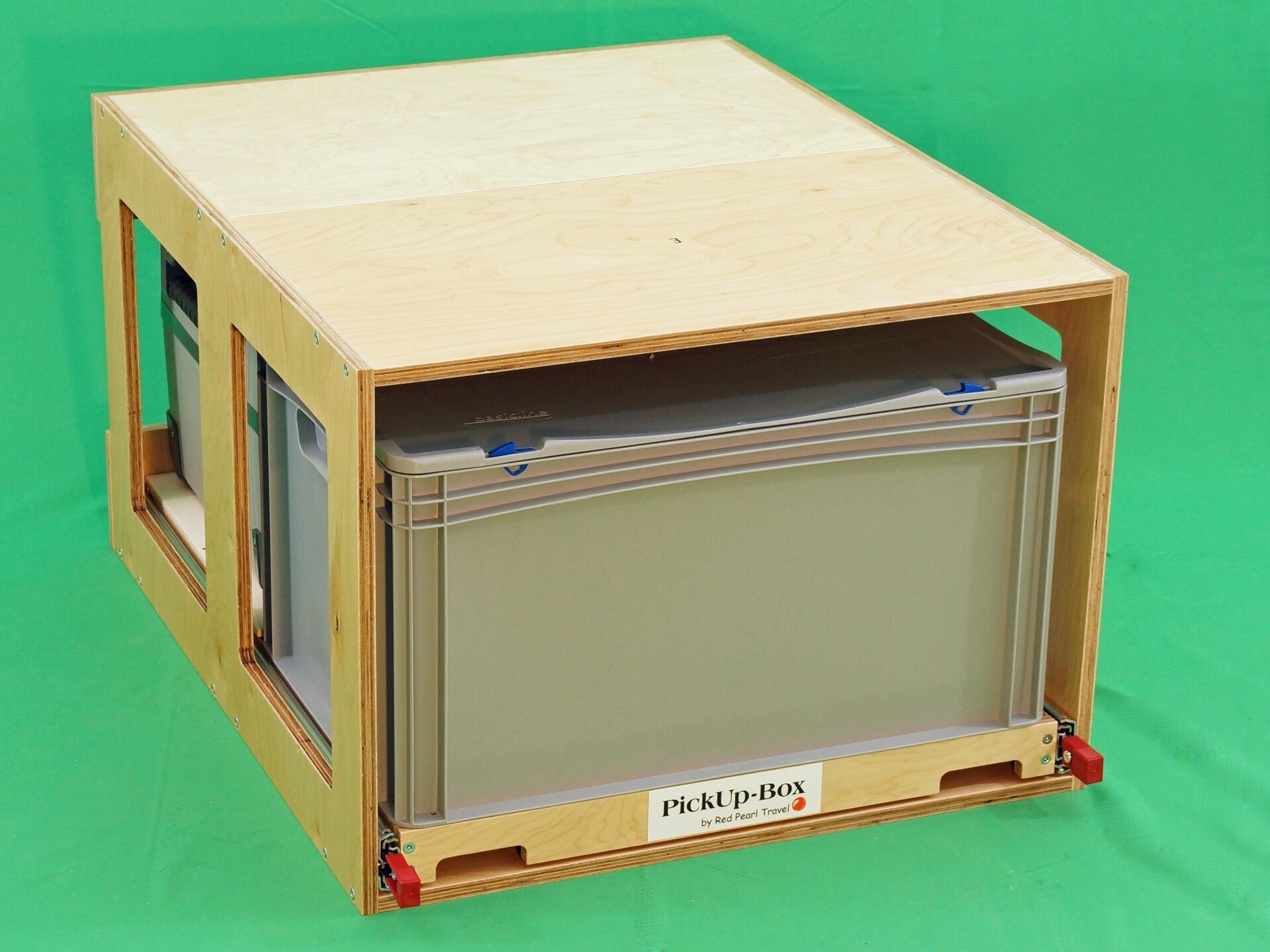 Das Grundraster der PickUp-Box Vanlife mini gestaltet sich in der Aufteilung für 2 Euroboxen 600 x 400 mm (oder dem entsprechenden Leerrahmen) quer hintereinander.