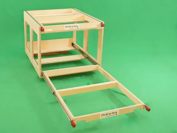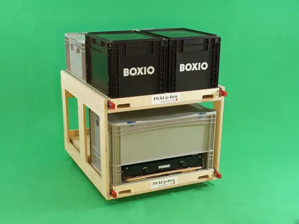 Zusätzlich zur PickUp-Box Vanlife mini hat die PickUp-Box Vanlife mini plus einen zusätzlichen Auszug für bis zu zwei weitere Euroboxen, damit du noch mehr Möglichkeiten oder Stauraum zur Verfügung hast.