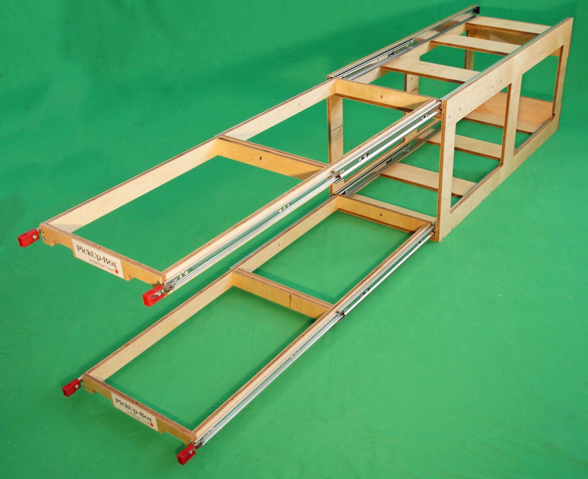 Zusätzlich zur PickUp-Box Camplife mini hat die PickUp-Box Camplife mini plus einen zusätzlichen Auszug für bis zu zwei weitere Euroboxen, damit du noch mehr Möglichkeiten oder Stauraum zur Verfügung hast.