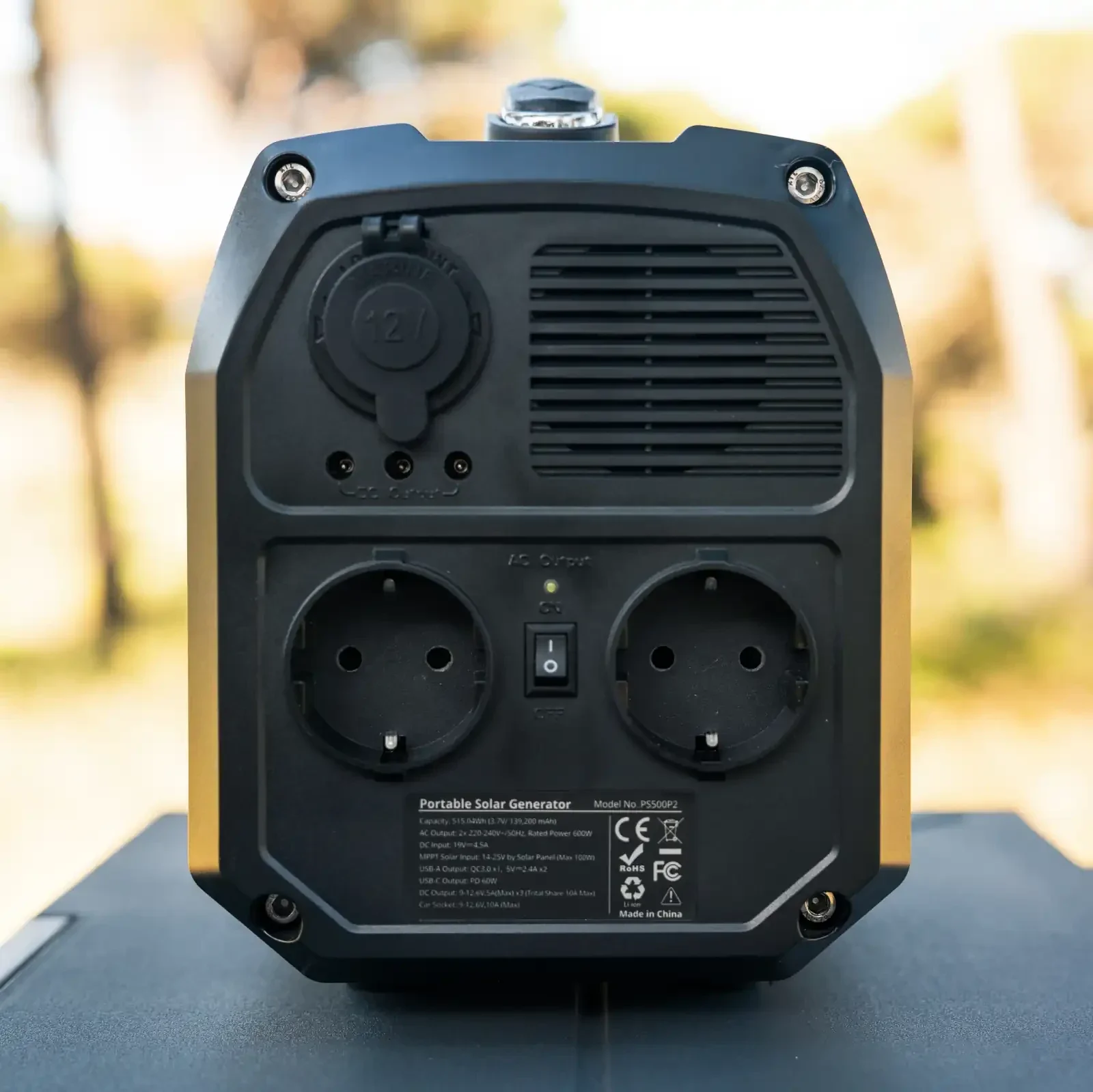 Die PS500P ist dein zuverlässiger Begleiter für all deine Abenteuer. Sie bietet dir verschiedene Anschlussmöglichkeiten, wie USB-Ausgänge zum Aufladen deines Smartphones oder Tablets, einen 12-Volt-Ausgang (zum Beispiel für den Betrieb deiner Kühlbox) und sogar zwei 230-Volt-Steckdosen. An diesen beiden Steckdosen liefert dir der PS500P echte Sinus-Wechselspannung mit einer Leistung von bis zu 600 Watt.
