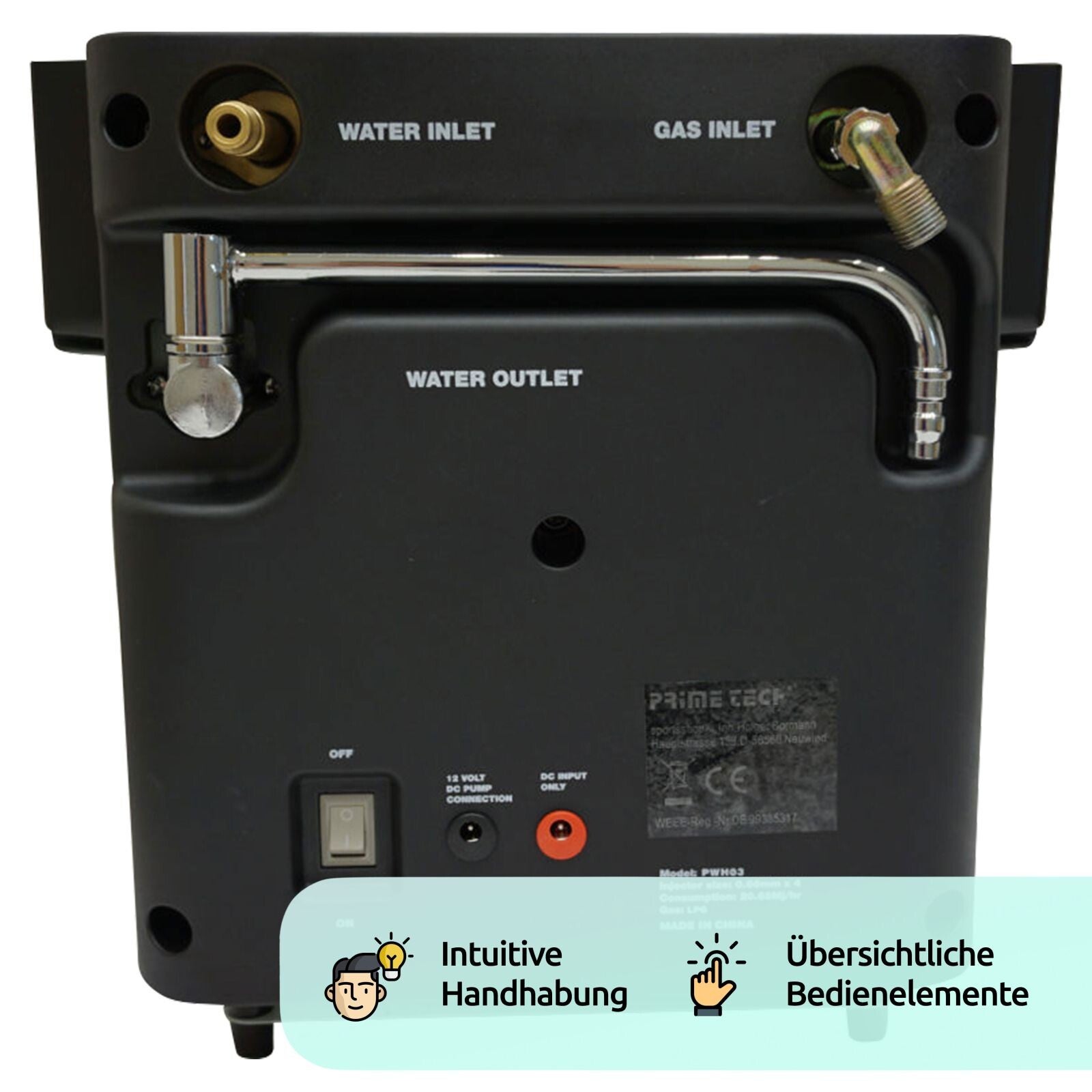 Genieße die Annehmlichkeit einer warmen Dusche oder des bequemen Geschirrspülens selbst an den abgelegensten Orten mit dem portablen Durchlauferhitzer von Prime Tech.
