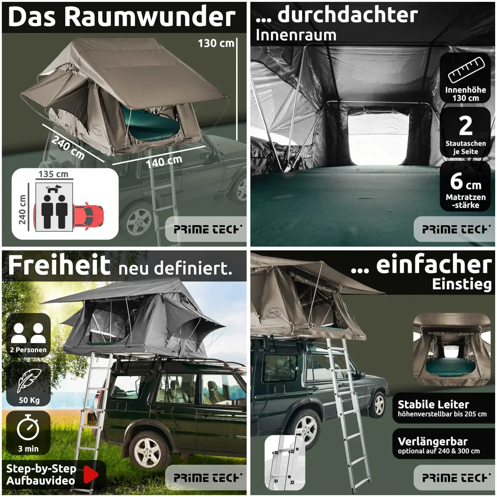 Die Zelte der Serie Prime Tech Wasteland Pro führen die Tradition der ungeschlagenen Bestseller der Prime Tech Softshell-Autodachzelte fort. Neben gewohnt hochwertigen Verarbeitung und dem üppigen Raumgefühl haben weitere Innovationen Einzug gehalten.