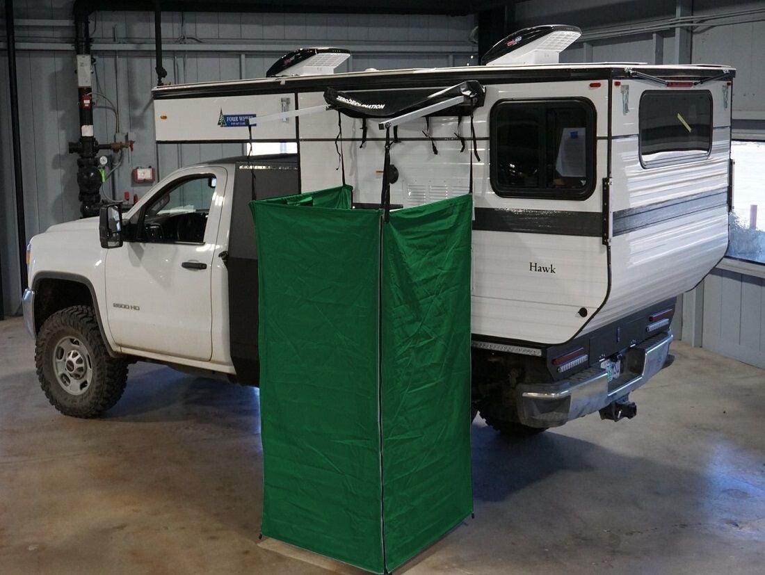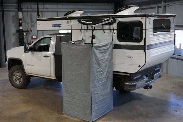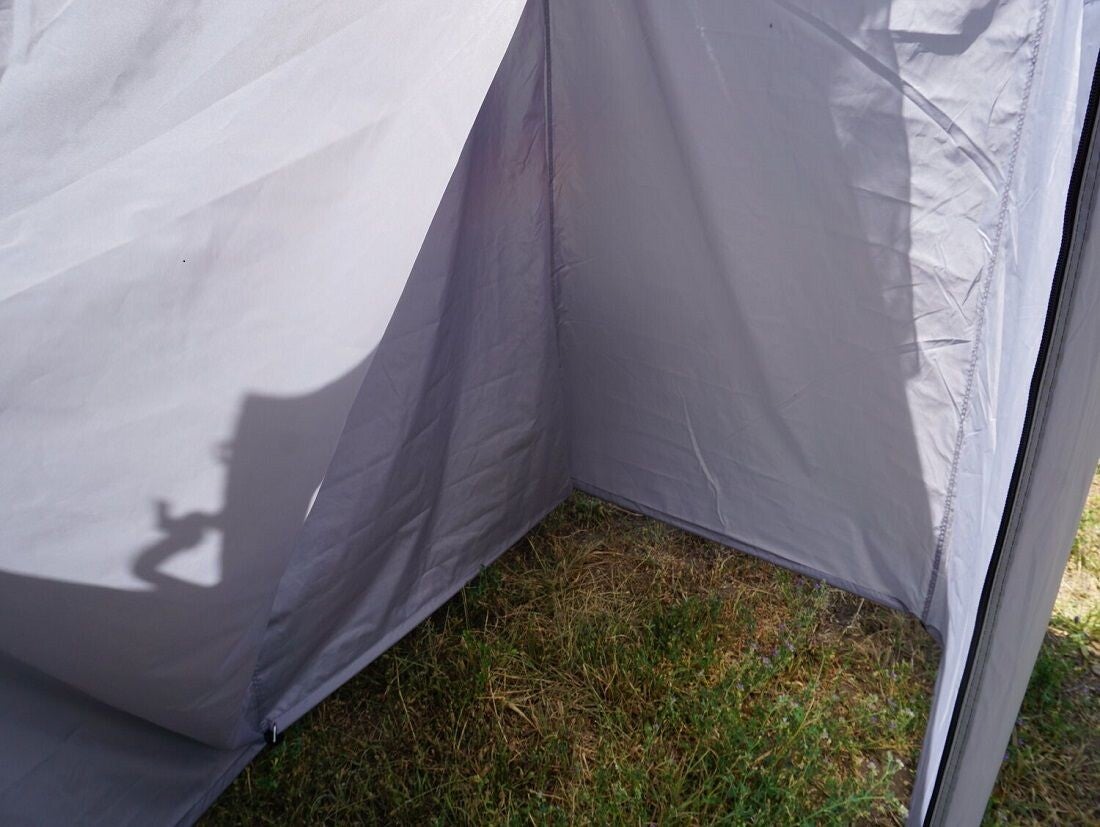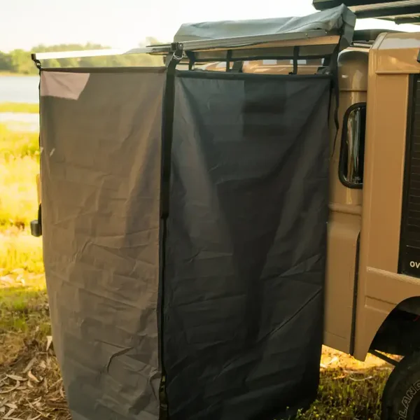 Das blickdichte Duschzelt von Prime Tech bietet Ihnen einen privaten Bereich zum Duschen, der direkt an Ihrem Fahrzeug angebracht wird. Die Montage des Duschzelts erfolgt mühelos durch Einschieben in die vorhandene Kederschiene der Markise und anschließendes Spannen. Das Design des Duschzelts ist offen an der Unterseite, um Wasserablauf zu ermöglichen. Die Höhe der Gurte lässt sich individuell an die Höhe Ihres Fahrzeugs anpassen.