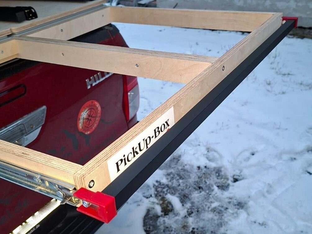 Jedes Set enthält 2 Aufnahmen (rot), die Verbindungsstange (schwarz) und die dazugehörigen Schrauben. Es kann jederzeit nachgerüstet werden.
