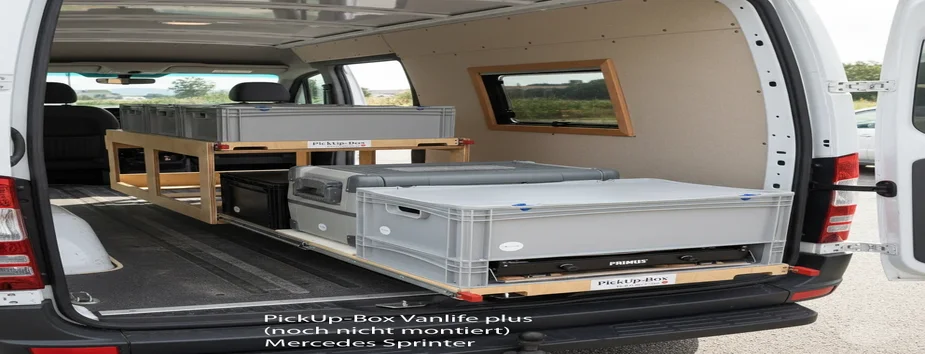 Um den Heckausbau abzuschließen, habe ich die "Innenseite" neu verkleidet. Durch den großen Längeseinteiler im Ladeabteil und der damit verbundenen Laderaumverlängerung bis zum Abschluss des Bettes (bringt ca. 15cm mehr Länge) wurde der vorhandene Raumteiler entfernt und durch eine Drehtür für den Zugang von Innen ersetzt. Somit können wir Sachen für den schnellen Zugriff darin lagern und brauchen das Bett dabei nicht hochklappen.